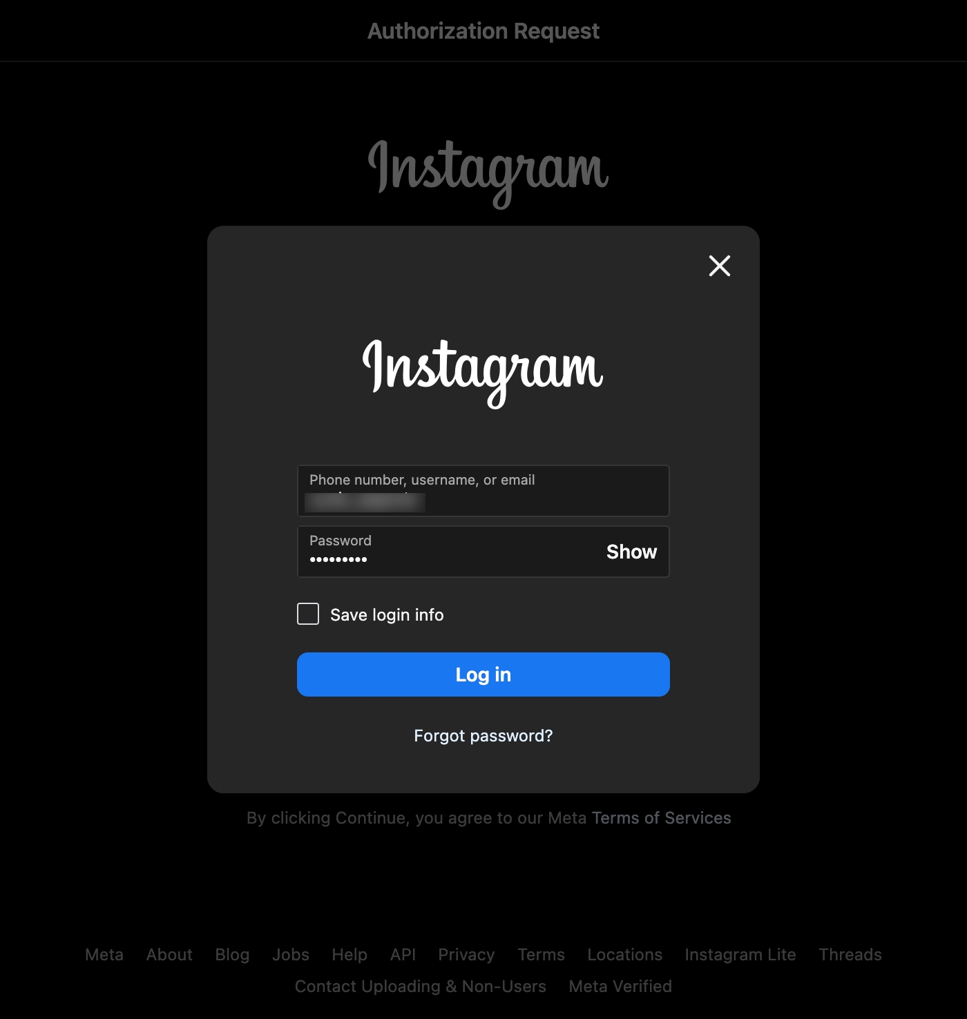 Use your Instagram credentials to login into the account.