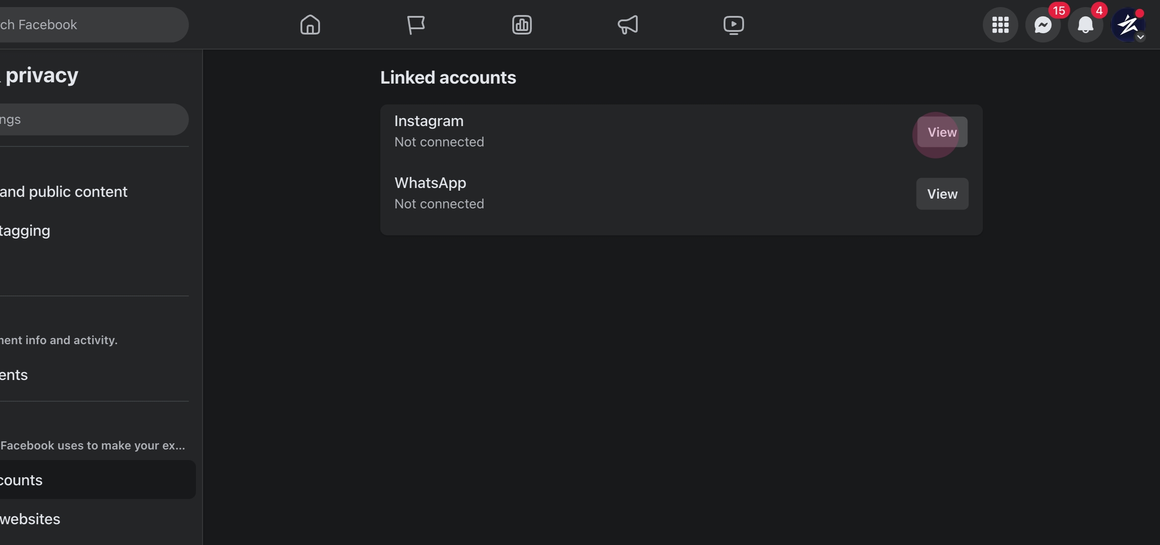 Click on View next to Instagram.