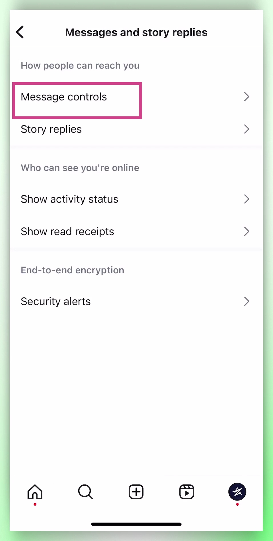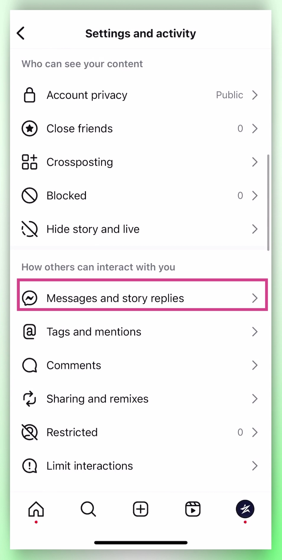 Navigate to Messages and Story Replies