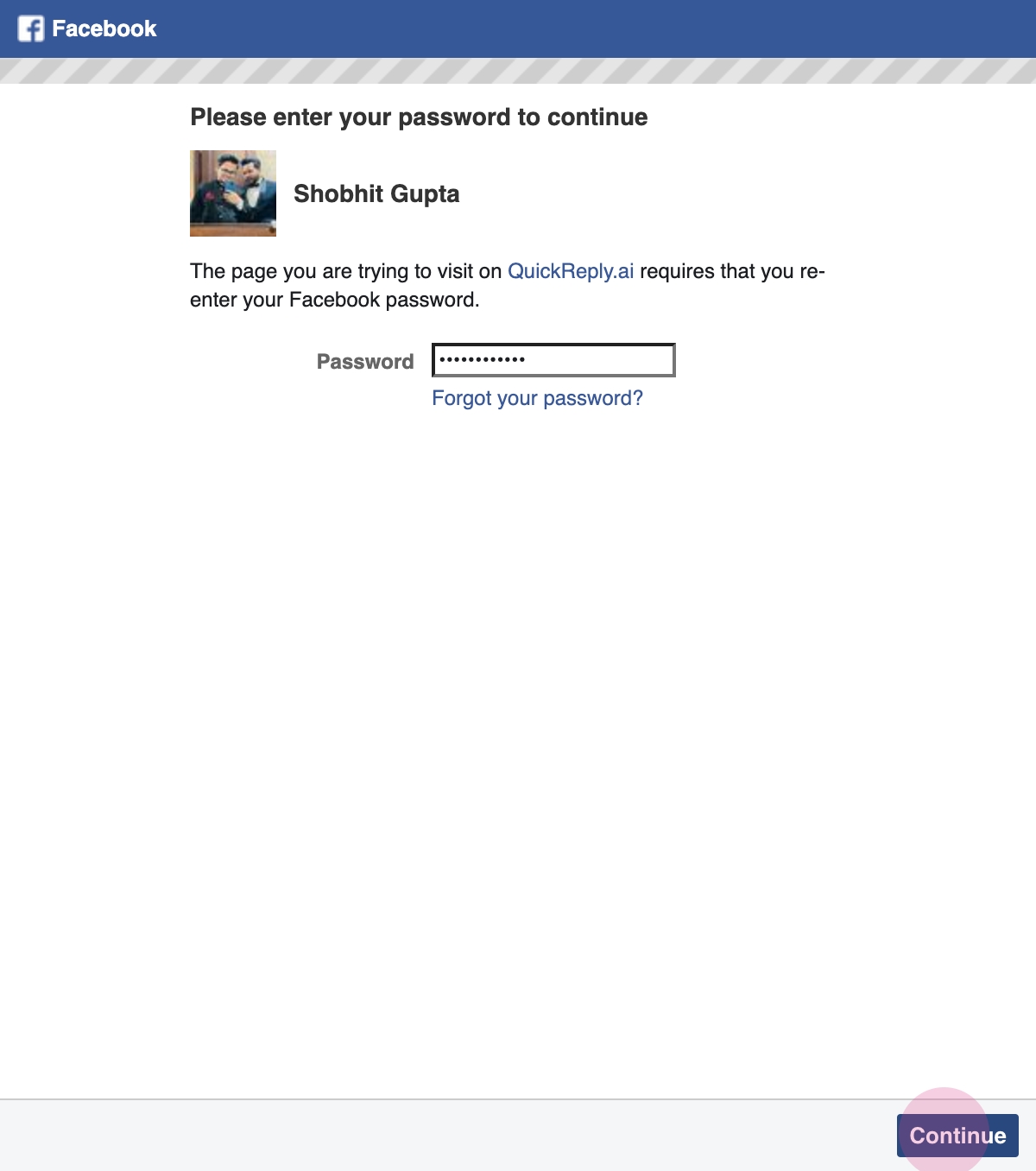 After successful login, click on Continue.