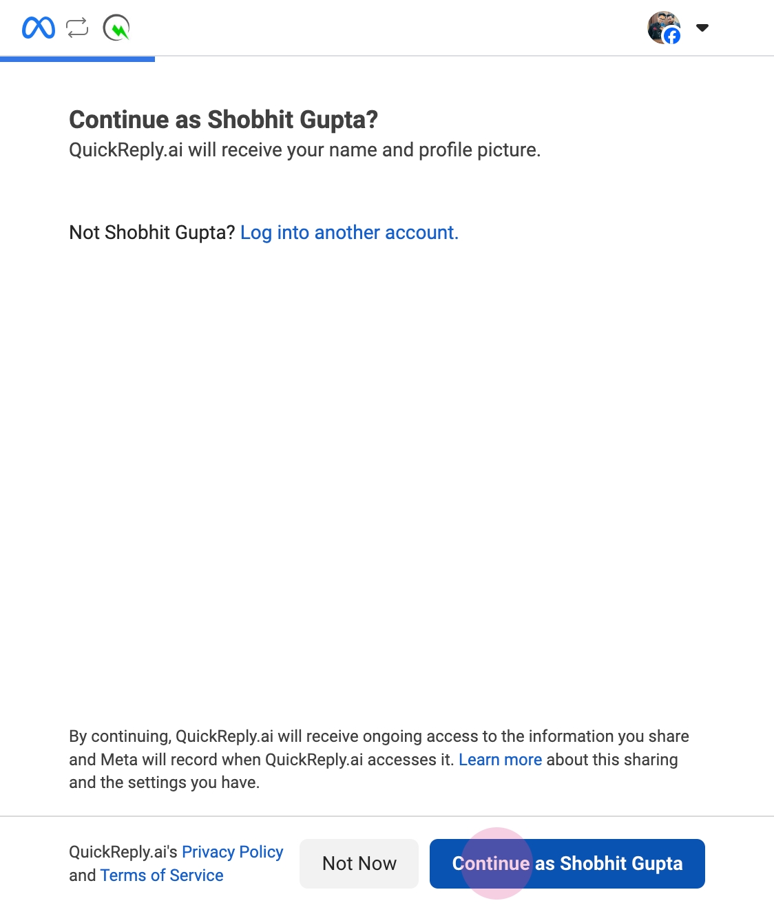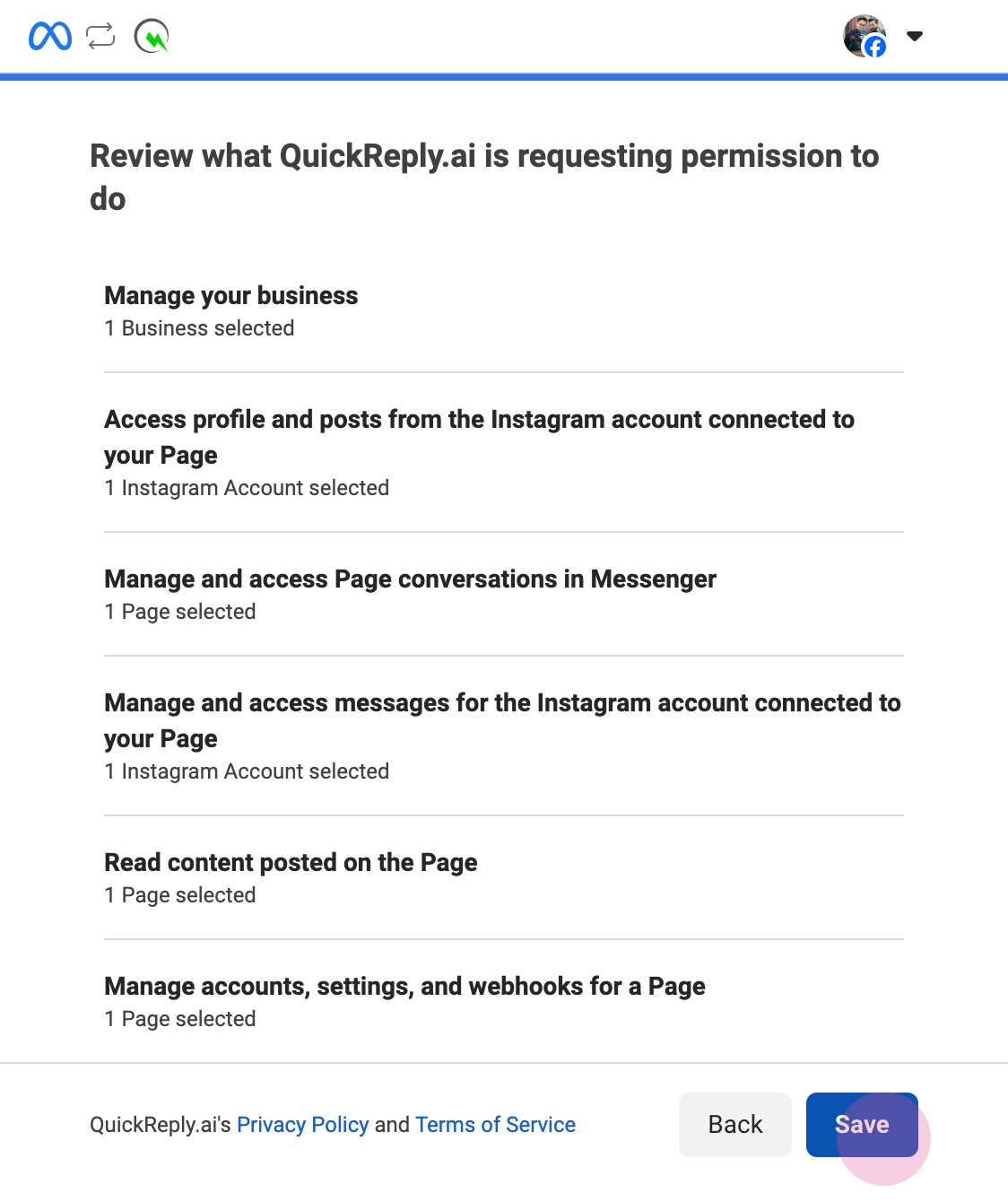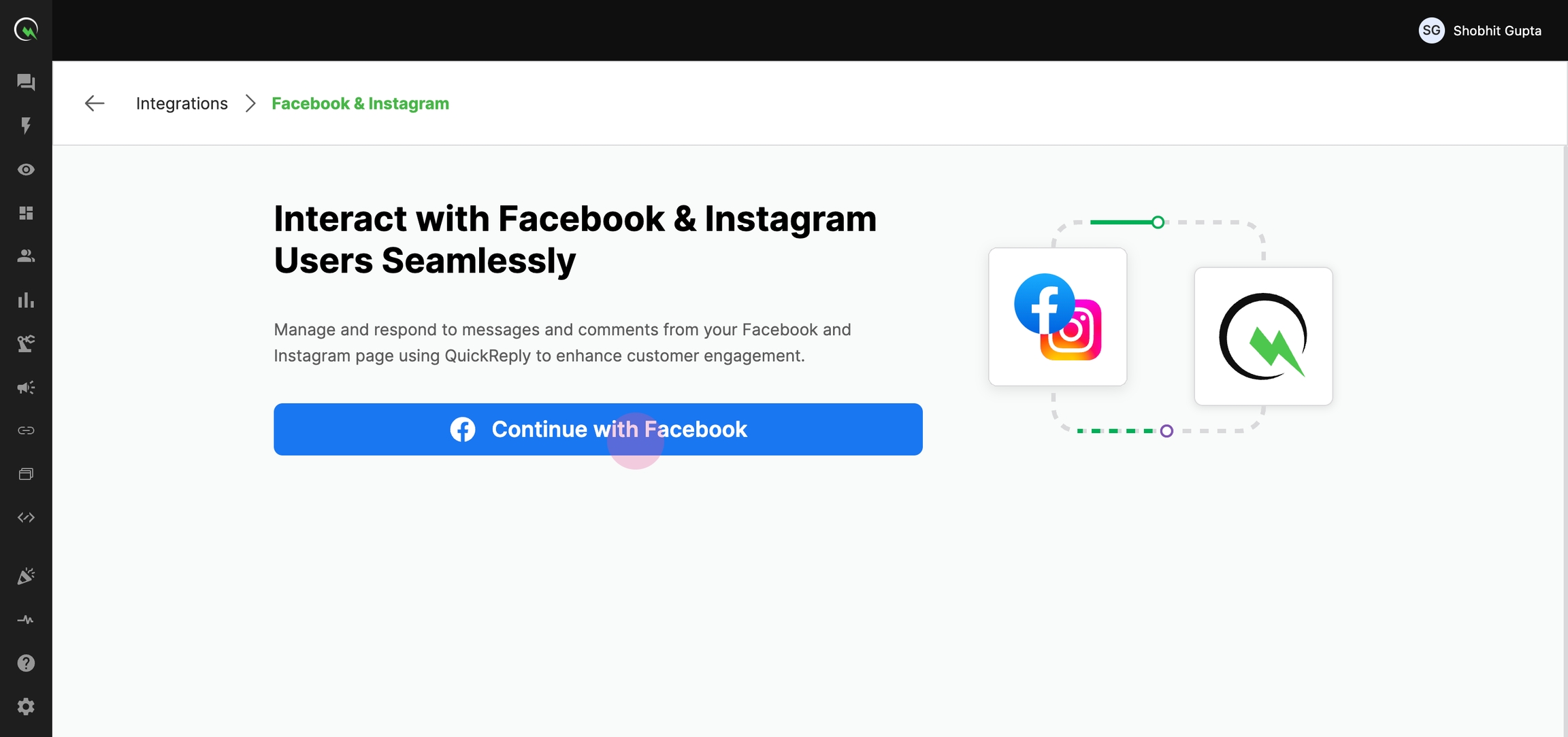 You've successfully connected your Instagram and Facebook pages to QuickReply.ai.
