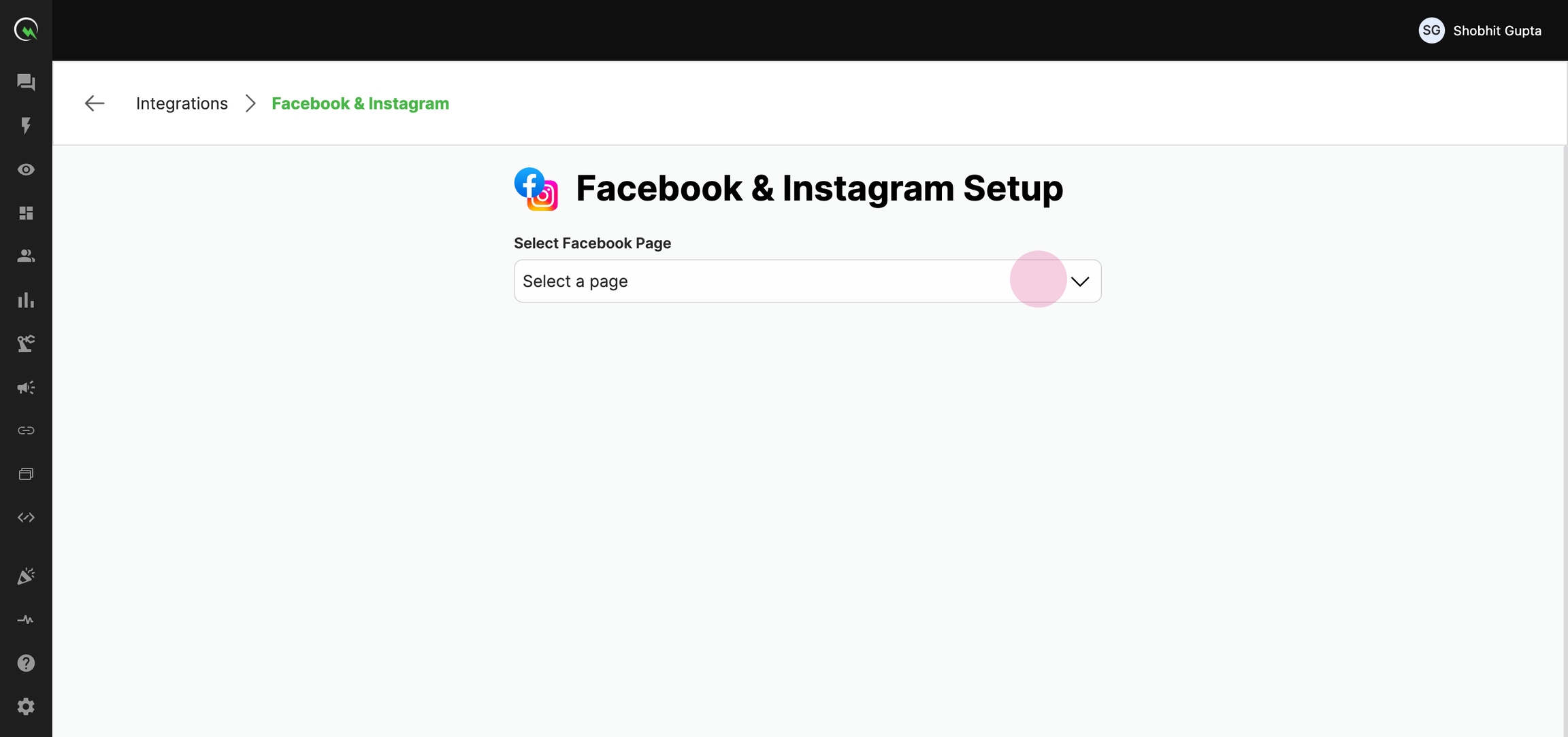 On the Facebook & Instagram integrations page, click on Continue with Facebook.