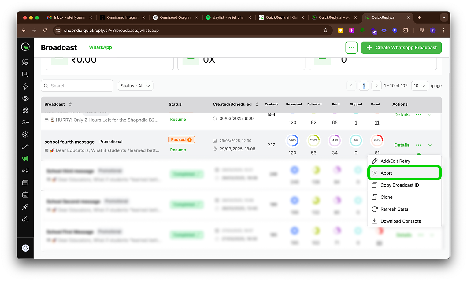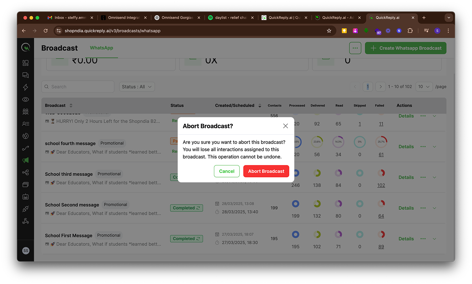 If a broadcast needs to be **stopped entirely**, it can be aborted, preventing further messages from being sent.