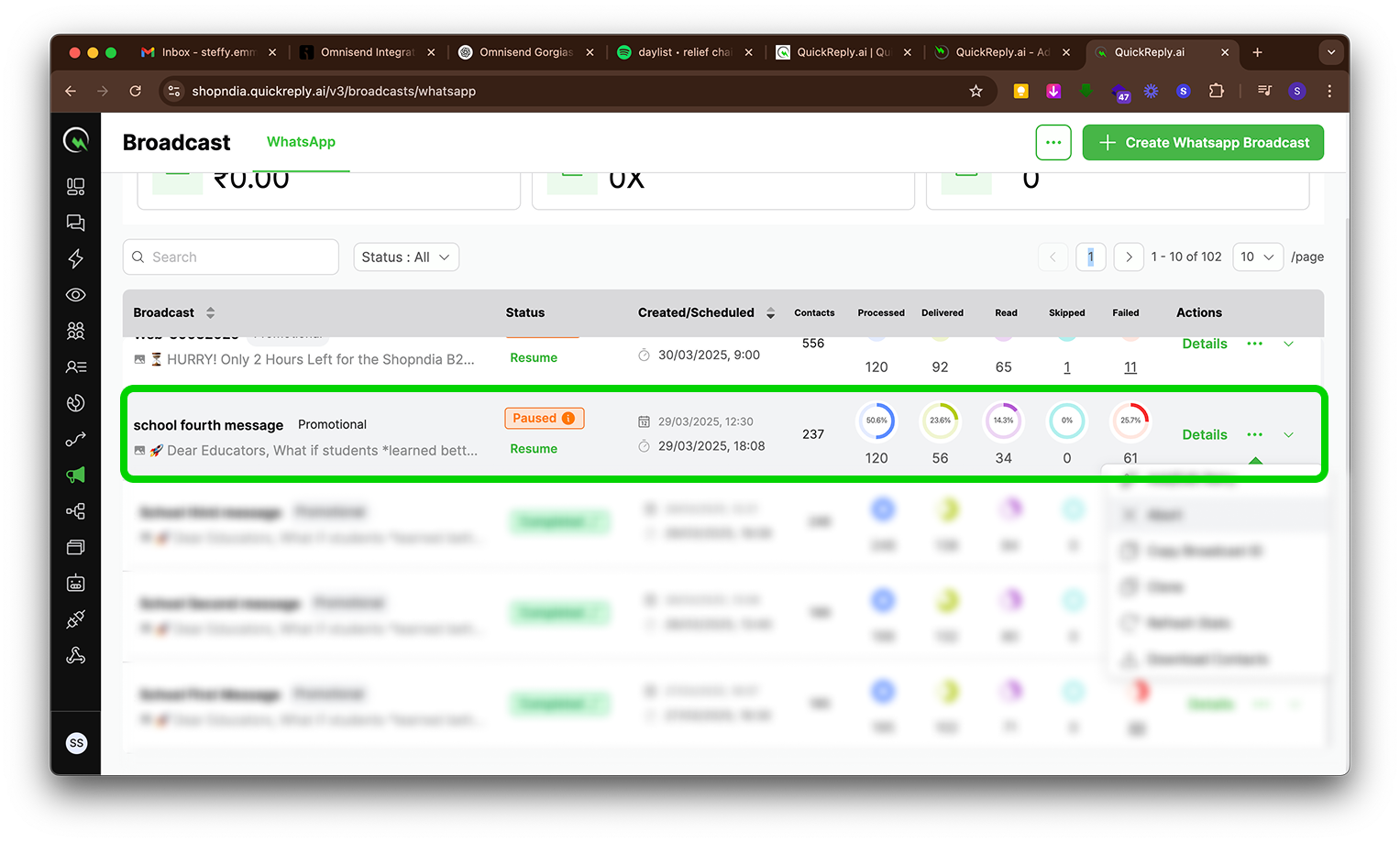 * Locate the three dots at the right-most side of the broadcast overview, for more options