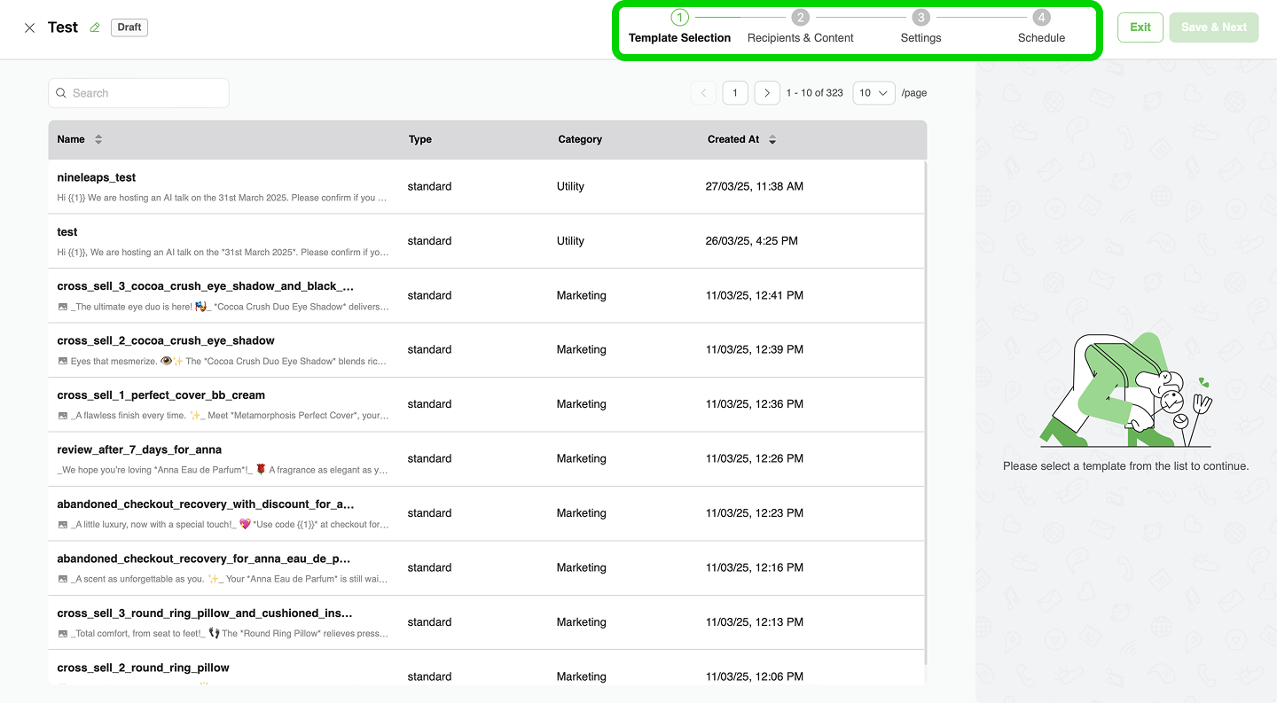 * You can edit any of the 4 steps i.e. Template Selection, Recipients & Content, Settings, and Schedule.