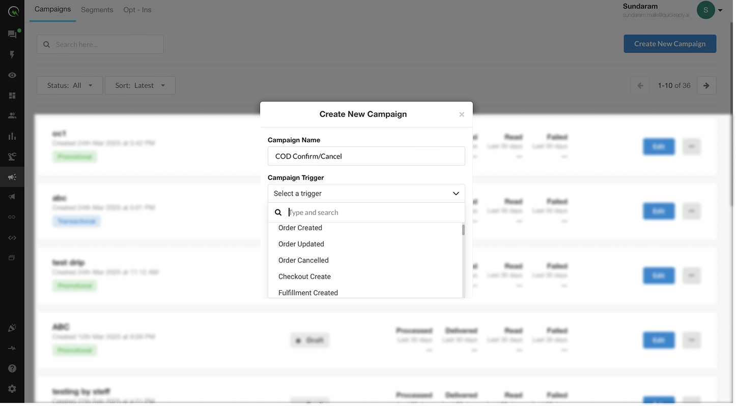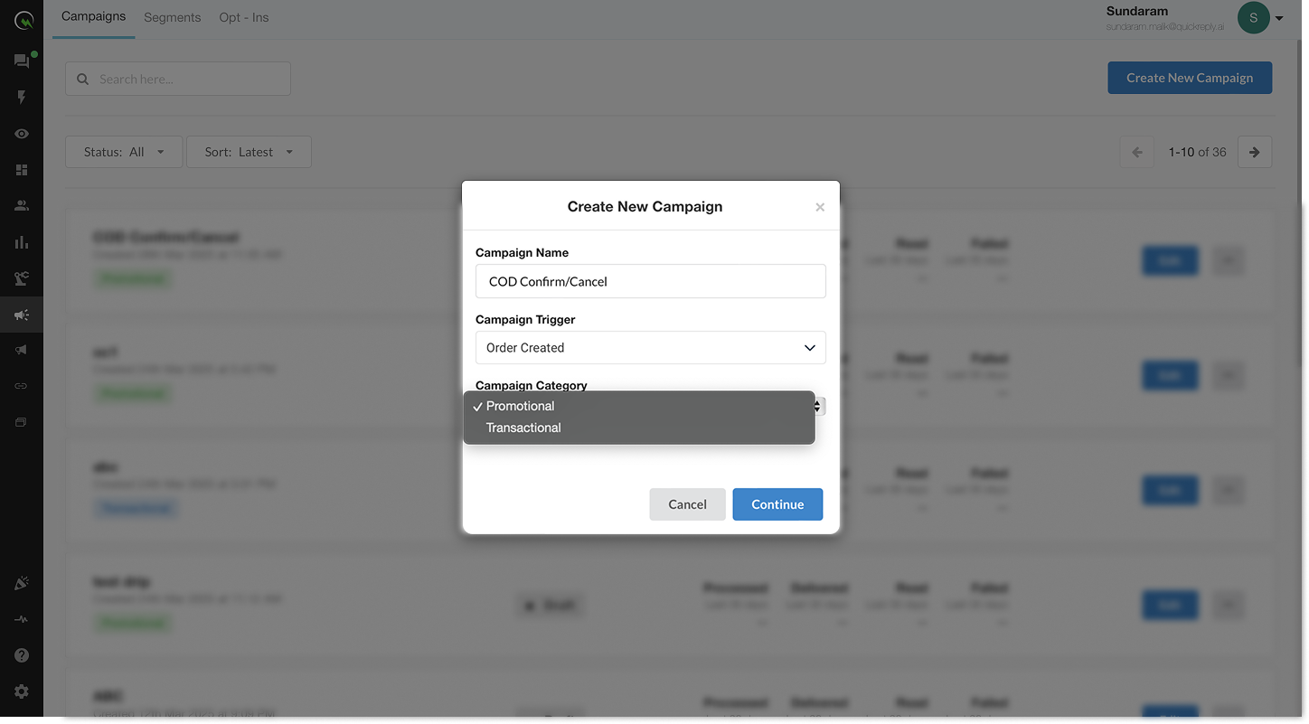 What It Means: Transactional campaigns are used to send critical information about orders, services, or account updates. These messages are non-promotional and often part of service workflows.