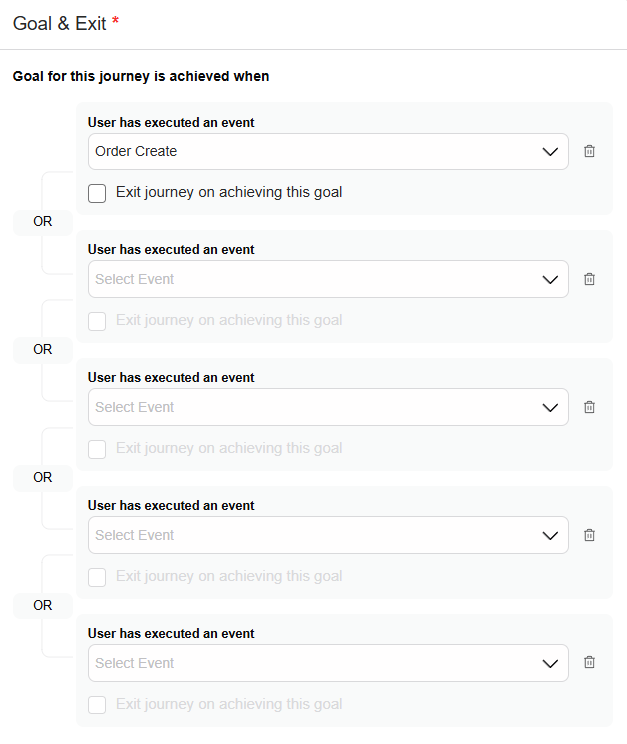 * Exit condition can be same as the goal, to do this click on Exit journey on achieving this goal