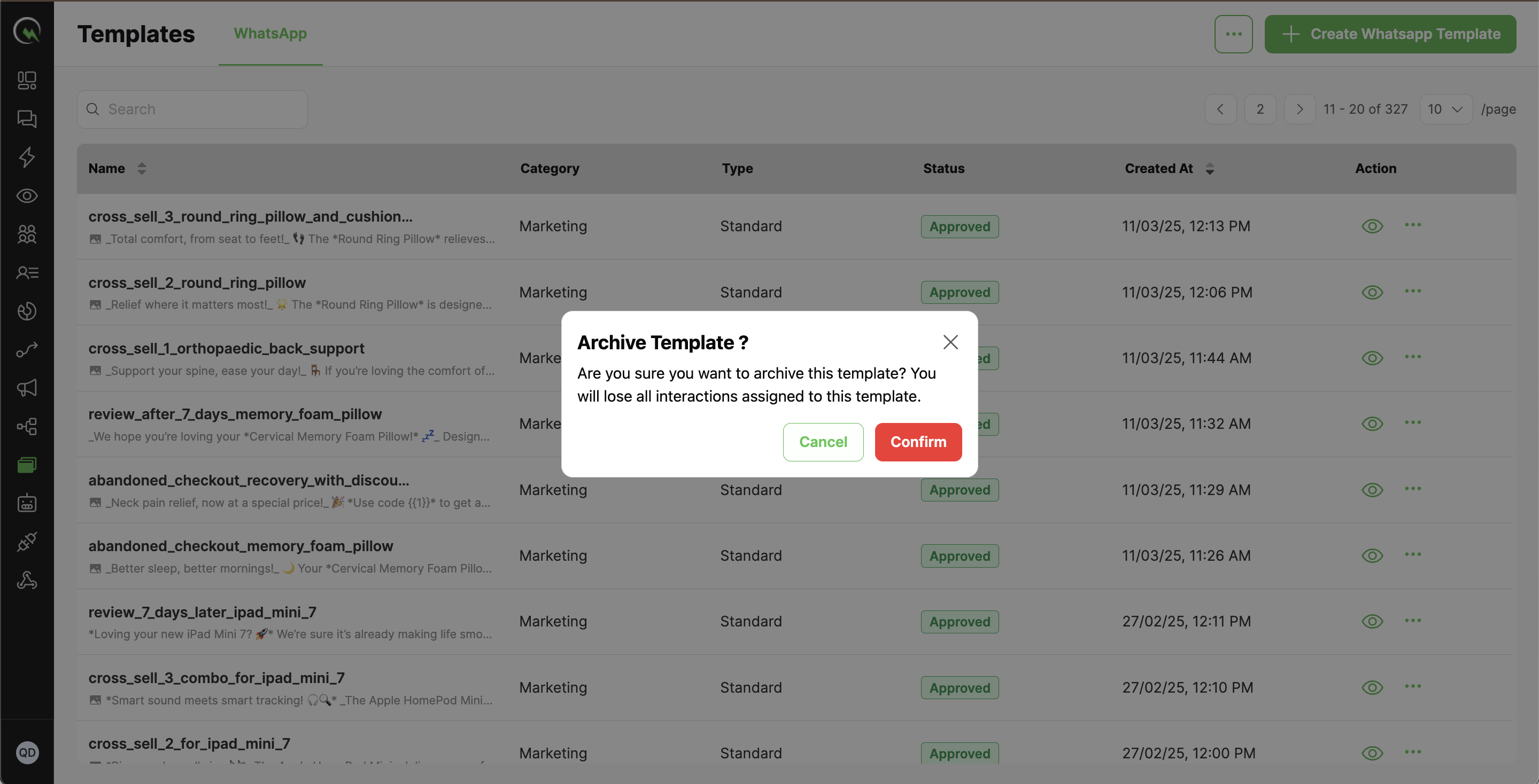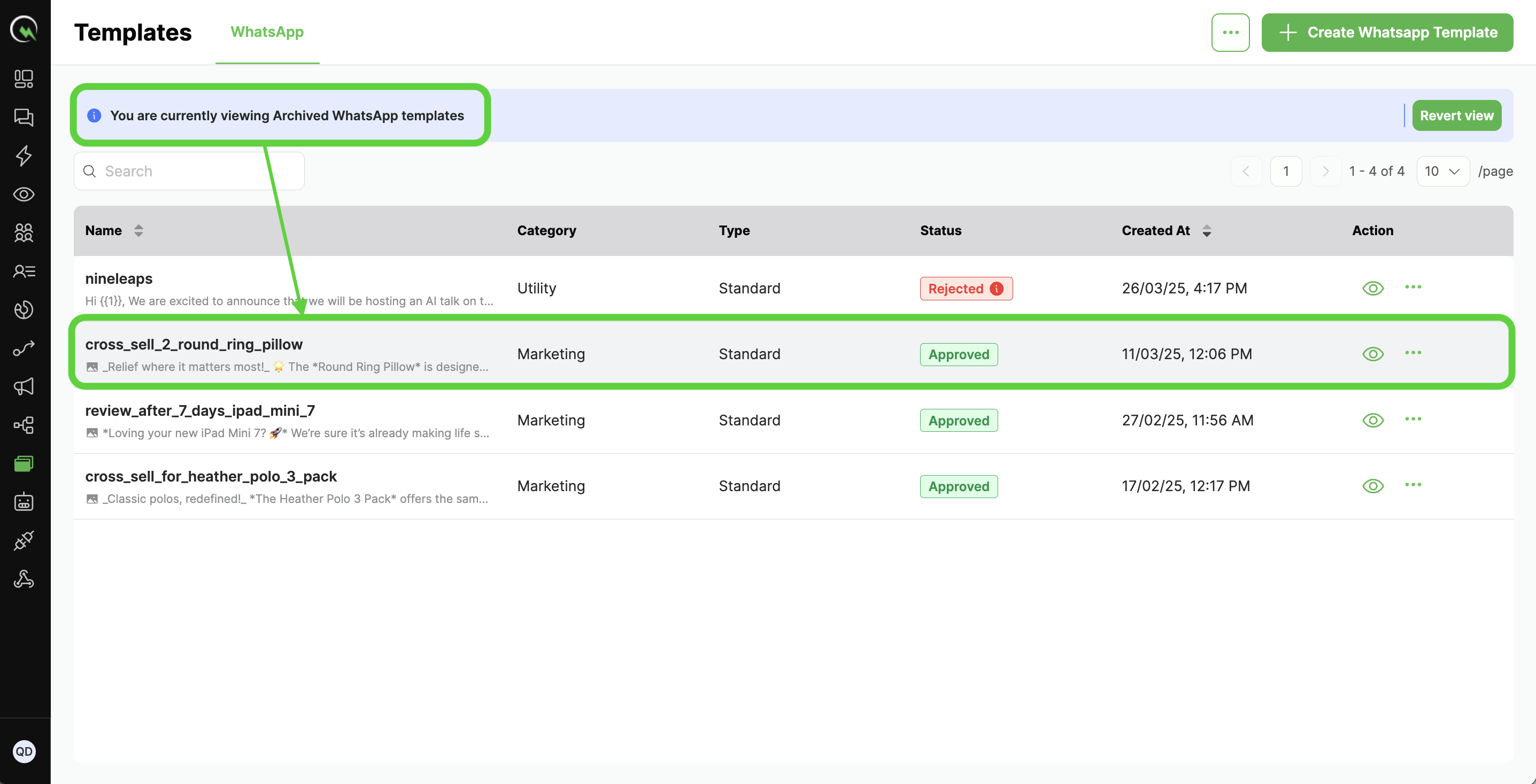 Archiving a template allows businesses to hide outdated or unused WhatsApp templates from the active list without permanently deleting them. This helps keep the workspace organized while retaining pas